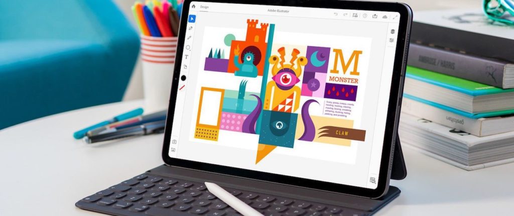 Wprowadzenie programu Illustrator na iPada poprzedzone było kilkoma miesiącami testów beta i podobnie jak Photoshop, Illustrator dla iPada zapewnia podstawową funkcjonalność znaną użytkownikom programu Illustrator na tablety. Illustrator dla iPada zmienia wygląd programu Illustrator dla ekranu dotykowego i dostosowuje je pod wsparcie Apple Pencil.
