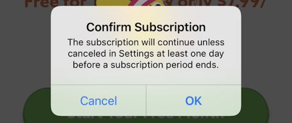 Whoa! Apple added an additional confirmation step for subscriptions. This new alert comes after you confirm with Touch ID/Face ID. I hope they address this in a more elegant way in iOS 13, but I’m thrilled Apple took a definitive step to curb scam subscriptions. ?? @pschiller pic.twitter.com/oktaEVdx0o