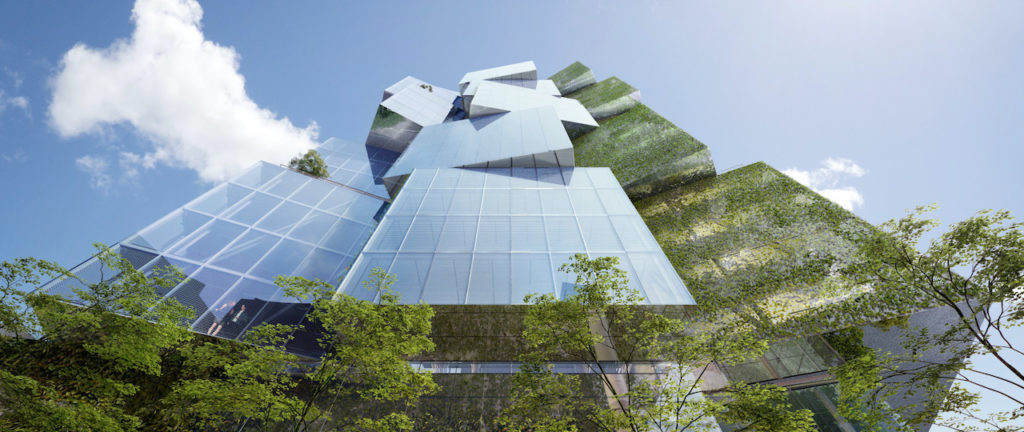 400 West Georgia ma unikalną konstrukcję, która składa się z ułożonych w stos kostek ze stali nierdzewnej przeplatanych zielenią i rozmieszczonych wokół centralnego betonowego rdzenia. Projekt został podobno zainspirowany japońską papierową latarnią.