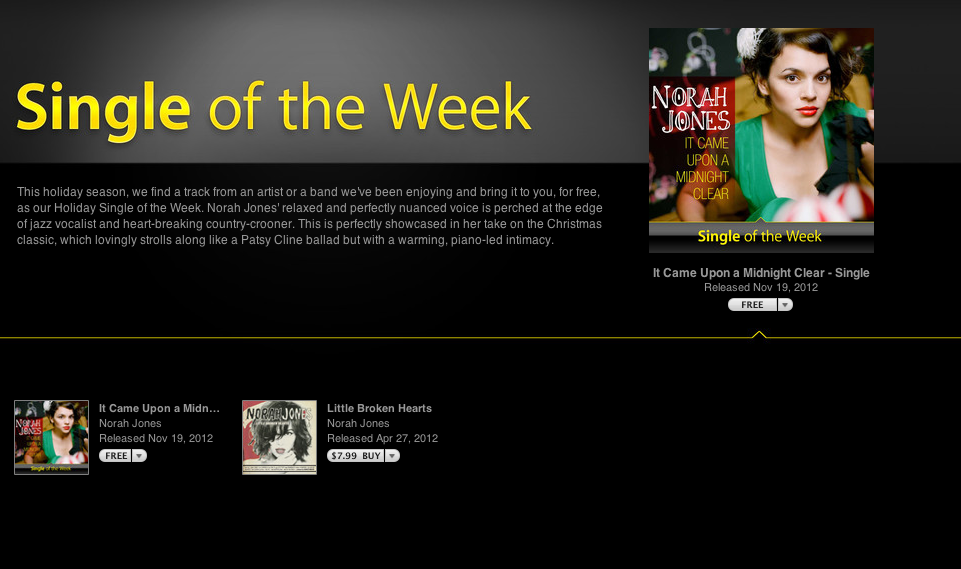 Może Apple się obraziło za tą sprawę z U2 ? 🙂 Ludzie dostali darmową płytę i byli niezadowoleni to teraz po singlach darmowych a i przy okazji nie było prezentów na gwiazdkę (12 days) 😉