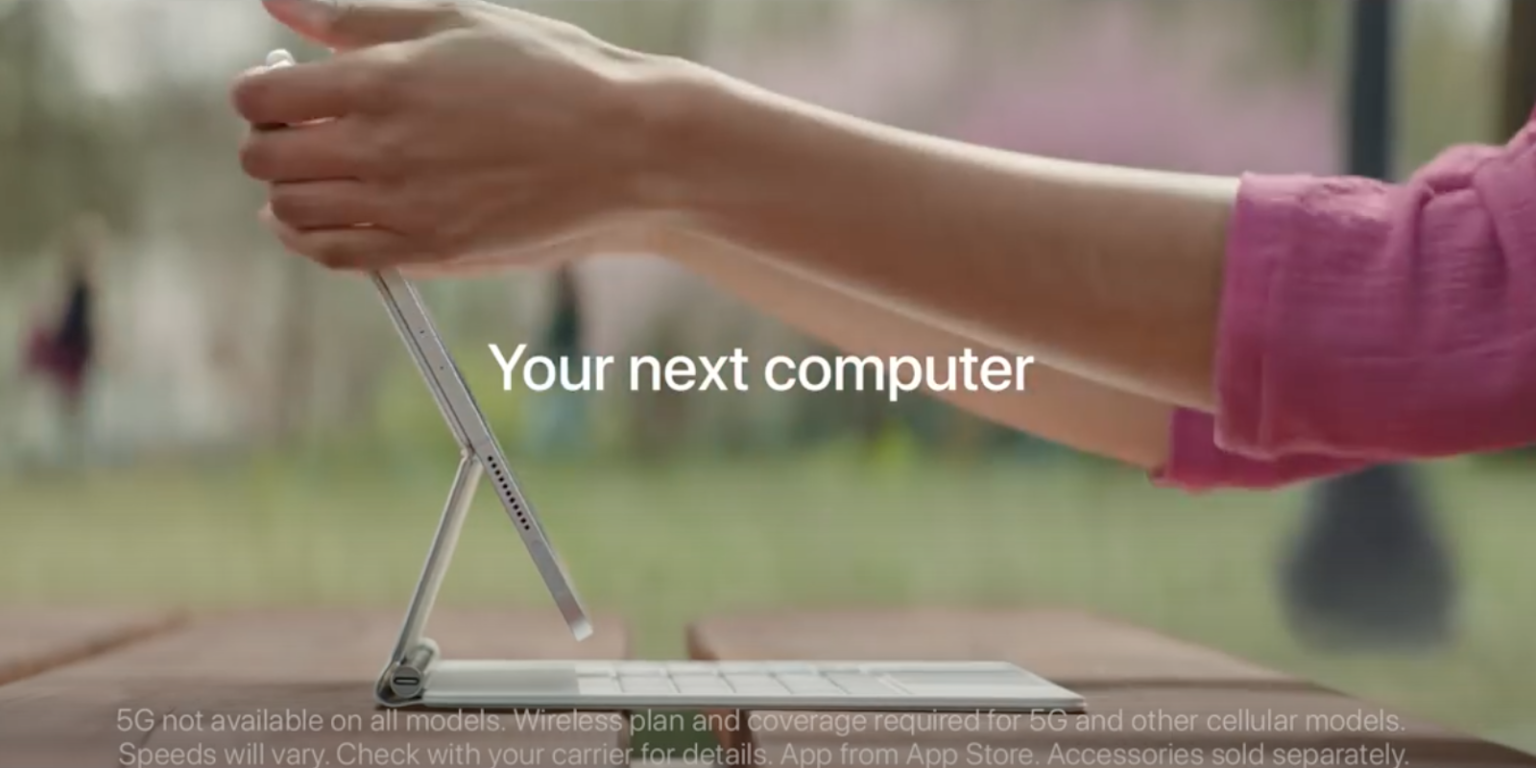 W reklamie, w której główna bohaterka używa iPada Pro M1, Magic Keyboard i Apple Pencil, wielu użytkowników zmaga się ze starymi komputerami w pomieszczeniach, mając nadzieję, że pewnego dnia będą mogli zamiast tego używać iPada Pro. Tekst i ścieżka dźwiękowa reklamy są w całości oparte na „Part of Your World” Małej Syrenki. Reklama kończy się, gdy wszystkie postacie śpiewają „chcę być częścią tego świata”, nawiązując do świata korzystającego z iPada Pro.