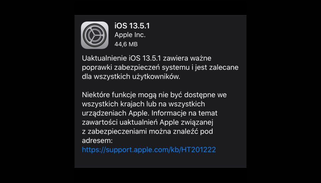 iOS 13.5.1 z poprawką bezpieczeństwa jest jedyną dostępną publicznie wersją systemu iOS, którą można zainstalować na iPhonie i iPadzie. W okresie beta testów jest jeszcze dostępna wersja iOS 13.5.5.