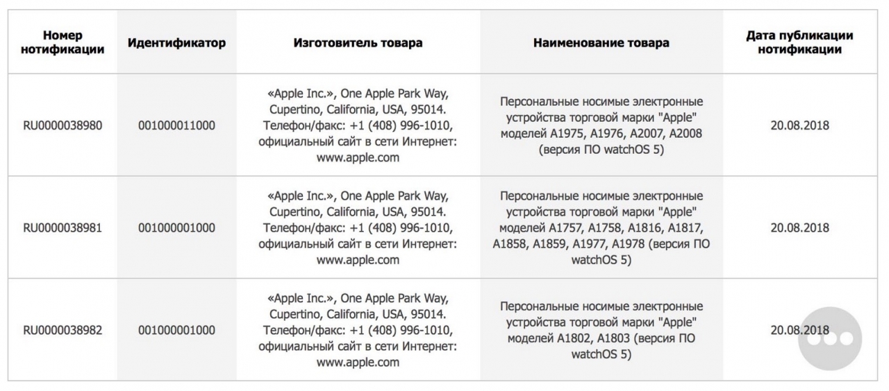 Zgodnie z francuskim blogiem Consomac, Apple zarejestrował dziś sześć nowych numerów Apple Watch w Eurazjatyckiej Unii Gospodarczej, w tym A1977, A1978, A1975, A1976, A2007 i A2008. Wszystkie modele działają z watchOS 5.