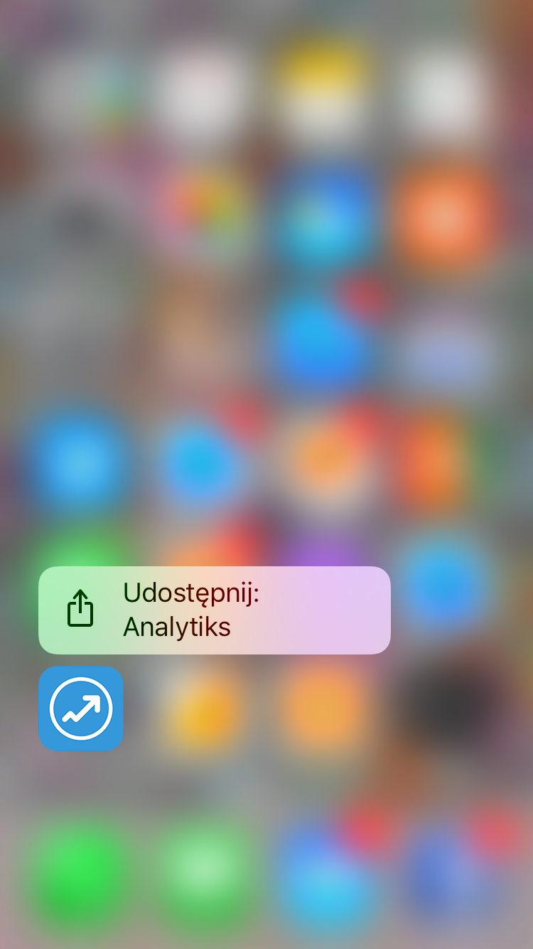 Szybkie menu – w iOS 10 beta 3 w iPhone’ie 6S dotknięcie 3D Touch na ikonę dowolnej aplikacji sugeruje teraz opcję udostępnienia aplikacji z jej nazwą. Wcześniej nazwa aplikacja nie była uwzględniona.