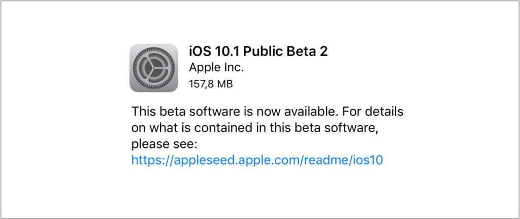 Firma Apple udostępniła drugą wersję beta nadchodzącej aktualizacji iOS 10 dla publicznych beta testerów, dwa tygodnie po wydaniu pierwszej publicznej wersji beta iOS 10.1 i jeden dzień po wypuszczeniu jej dla deweloperów. Od czasu publicznego wydania iOS 10 minęły trzy tygodnie.
