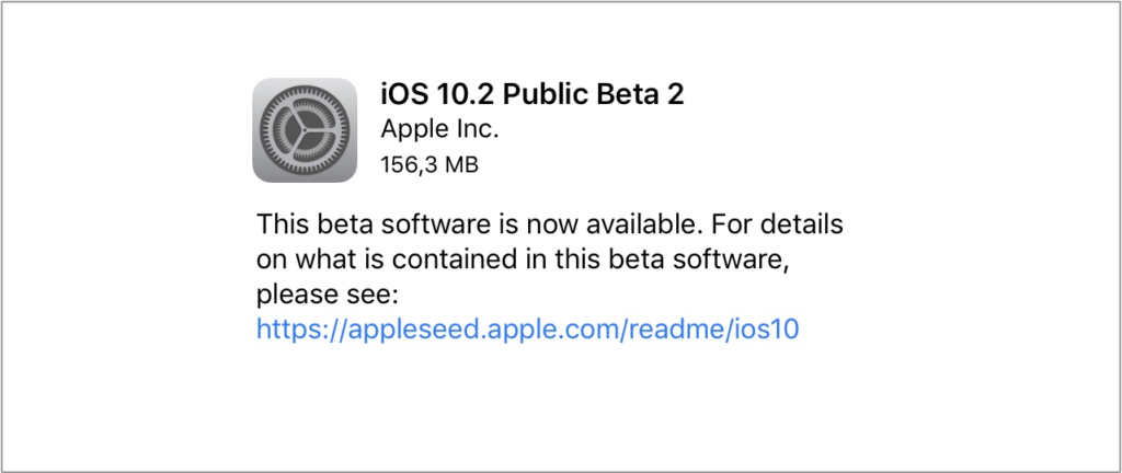 Beta testerzy, którzy zarejestrowali się w programie testów beta firmy Apple otrzymali aktualizację beta iOS 10.2 z poziomu uaktualnień urządzenia iOS po zainstalowaniu odpowiedniego certyfikatu na swoim urządzeniu.