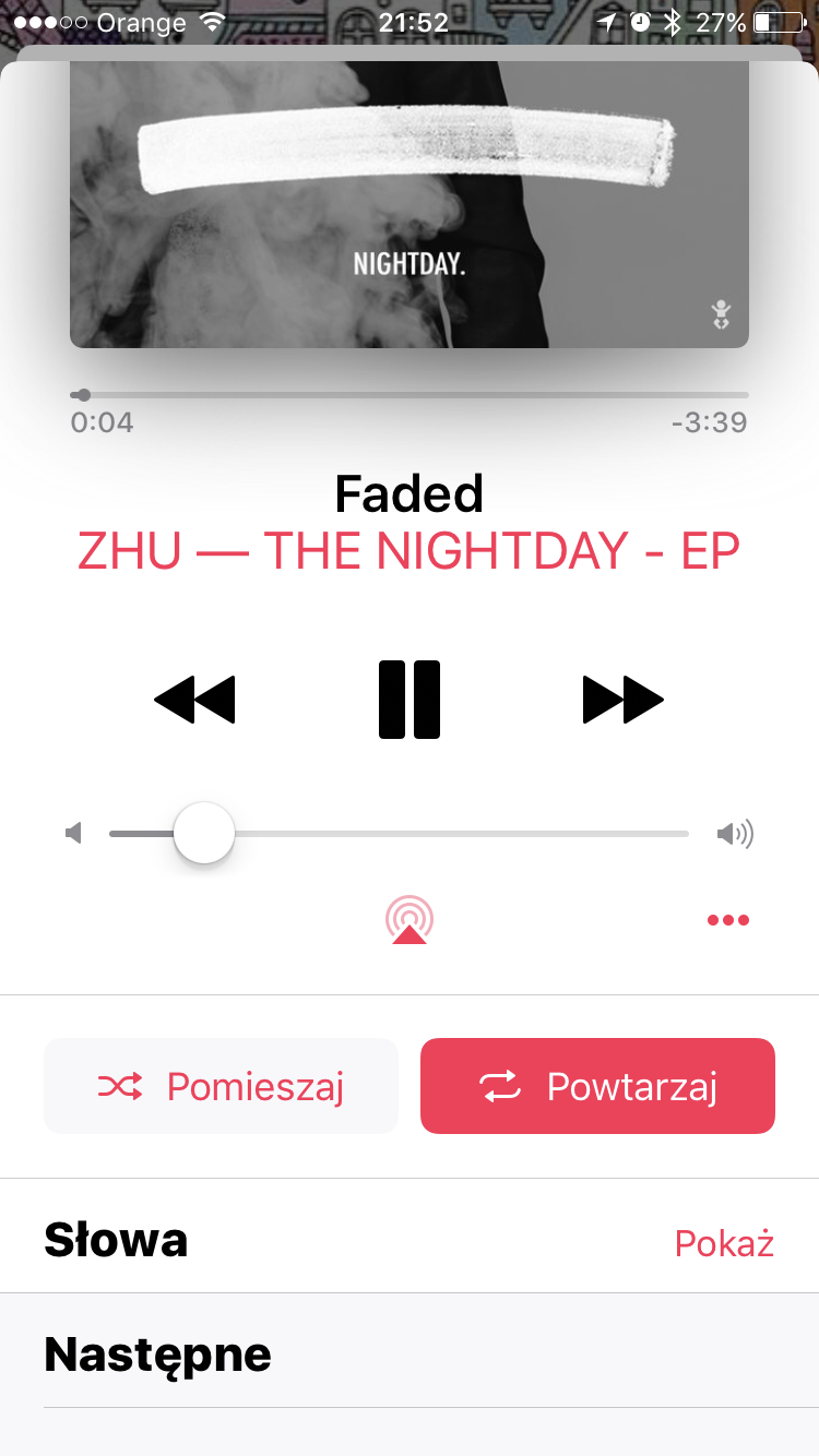 Muzyka – Pojawiły się bardziej widoczne przyciski „Pomieszaj” i „Powtarzaj” dostępne w aplikacji Muzyka podczas odtwarzania utworu.