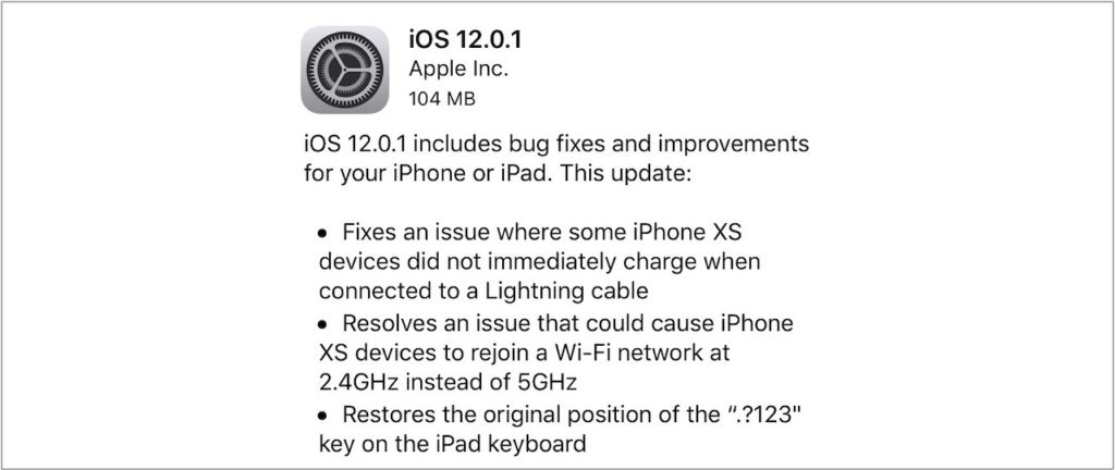 Dzisiejsza aktualizacja rozwiązuje kilka poważnych błędów, które nękają użytkowników iOS 12. Rozwiązuje problem, który może powodować, że niektóre urządzenia iPhone XS nie ładują się po podłączeniu kabla Lightning. Problem ten został wykryty wkrótce po wydaniu systemu iOS 12.