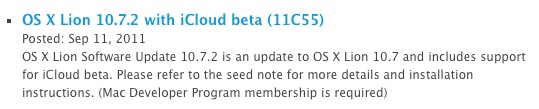 Firma Apple wydała nową wersję OS X beta dla deweloperów z pełną integracją iCloud. OS X 10.7.2 build 11C55 jest dostępny dla programistów już teraz. Po raz pierwszy w tym buildzie iCloud został włączony do OS X Liona. Wcześniej, programiści musieli pobierać osobne pakiety systemu operacyjnego oraz iCloud.