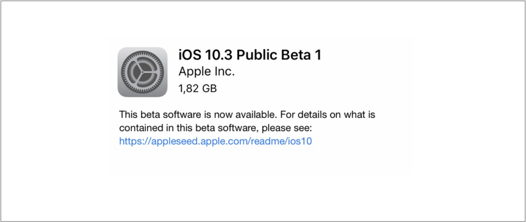 Beta testerzy, którzy zarejestrowali się w programie testów beta firmy Apple otrzymali aktualizację iOS 10.3 w wersji beta z poziomu uaktualnień urządzenia iOS po zainstalowaniu odpowiedniego certyfikatu na swoim urządzeniu.
