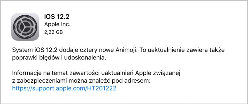 System iOS 12.2 dodaje cztery nowe Animoji. To uaktualnienie zawiera także poprawki błędów i udoskonalenia.