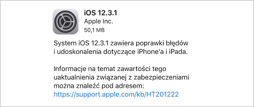 System iOS 12.3.1 zawiera poprawki błędów i udoskonalenia dotyczące iPhone’a i iPada. To uaktualnienie: