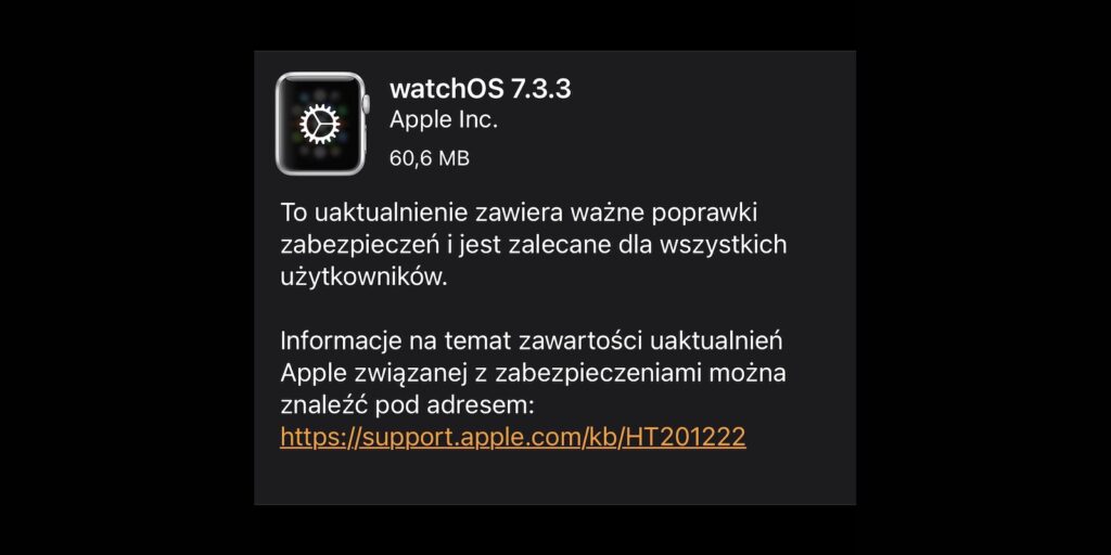Aktualizację watchOS 7.3.3 .3 można pobrać za pośrednictwem dedykowanej aplikacji Watch na iPhone’a, przechodząc do opcji Ogólne> Uaktualnienia.