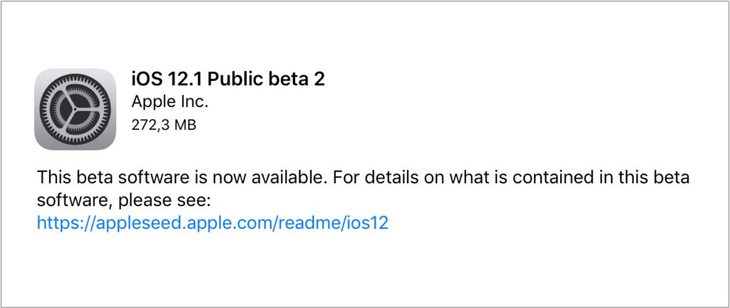 Apple udostępnił publicznym testerom drugą wersję beta nadchodzącej aktualizacji iOS 12.1, dwa tygodnie po wypuszczeniu pierwszej wersji beta i nieco ponad dwa tygodnie po oficjalnym wydaniu iOS 12, nowej wersji oprogramowania iOS.