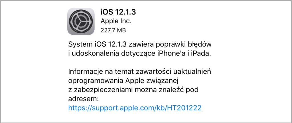 Aktualizacja iOS 12.1.3 nie wprowadza żadnych nowości i raczej skupia się tylko na poprawkach błędów. Jeśli znajdziemy coś nowego w „trzeciej” wersji beta iOS 12.1.3, zaktualizujemy ten wpis.