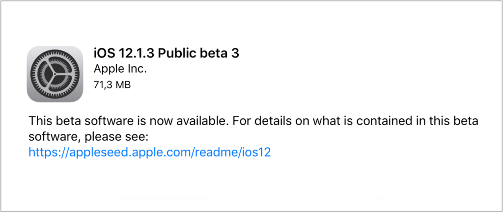 Zarejestrowani testerzy mogą pobrać nową wersję beta iOS 12.1.3 z poziomu uaktualnienia urządzenia iOS bezprzewodowo po zainstalowaniu odpowiedniego profilu konfiguracji.