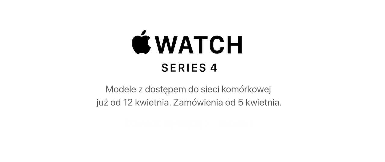 Apple oficjalnie poinformował dziś, że zegarki Apple Watch Serii 4 z obsługą LTE zostaną wprowadzone w Polsce 12 kwietnia, a wstępne zamówienia online rozpoczną się 5 kwietnia.