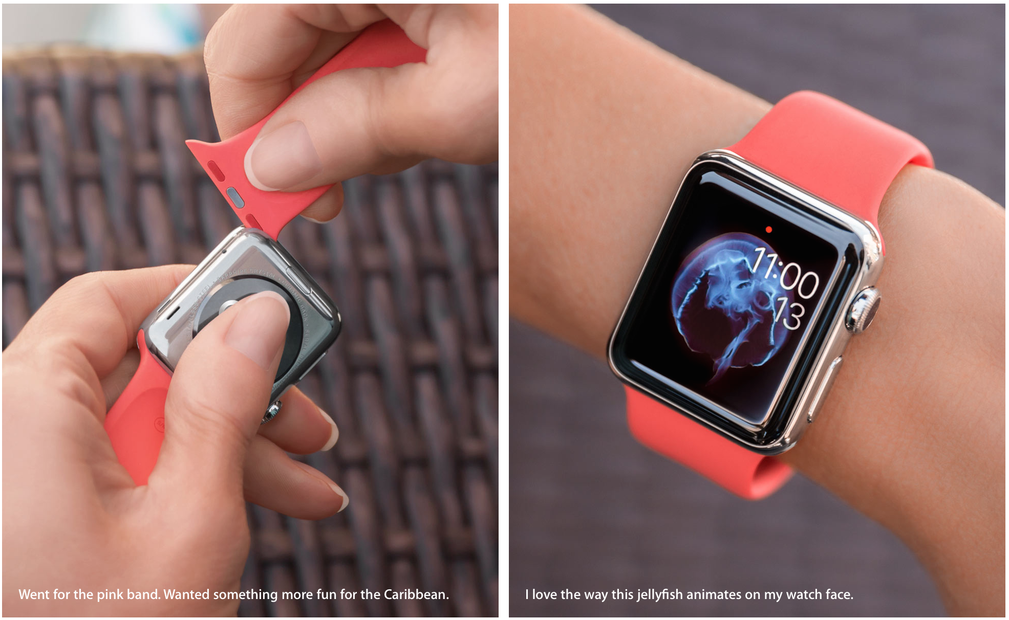 Warto zauważyć, że Turlington Burns udostępniła również kilka zdjęć pokazujących montaż nowego paska do Apple Watch. „Założyłam różowy pasek. Chciałam czegoś więcej od Karaibów”.