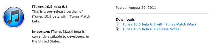 Apple udostępnił nową wersję iTunes 10.5 dla deweloperów, dodając w nim funkcję „iTunes Match”, która umożliwia użytkownikom przesyłanie utworów umieszczonych w bibliotece iTunes bezpośrednio do iCloud. W przeciwieństwie do innych usług „w chmurze” oferowanych przez Google i Amazon, iTunes Match używa technologii „skanowania i dopasowania”, która sprawdzi zgodność piosenek użytkownika w bibliotece iTunes do tych znalezionych na serwerach Apple iTunes Store, unikając w ten sposób, przesyłania biblioteki w całości. ITunes Match beta jest obecnie dostępna tylko dla deweloperów w Stanach Zjednoczonych.