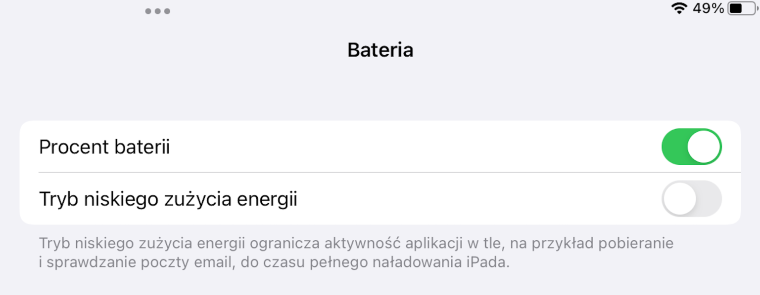 Nie ma wzmianki o trybie niskiego zużycia energii na stronie poświęconej iPadOS 15, ale po zainstalowaniu aktualizacji dostępna jest funkcja trybu niskiego zużycia energii.