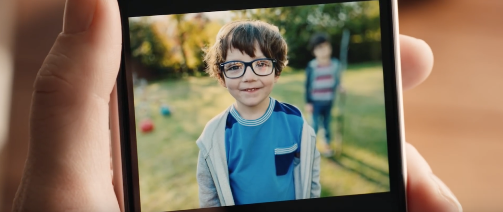 W reklamie dwie matki patrzą na zdjęcie, gdy nagle jedna z nich zauważa się, że jej syn został zamazany w tle. „Czy zrobiłeś bokeh mojemu dziecku?” pyta, podczas gdy druga matka próbuje wyjaśnić, że to było przypadkowe.