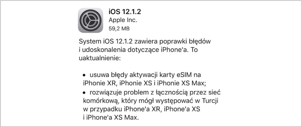 System iOS 12.1.2 zawiera poprawki błędów i udoskonalenia dotyczące iPhone’a. To uaktualnienie: