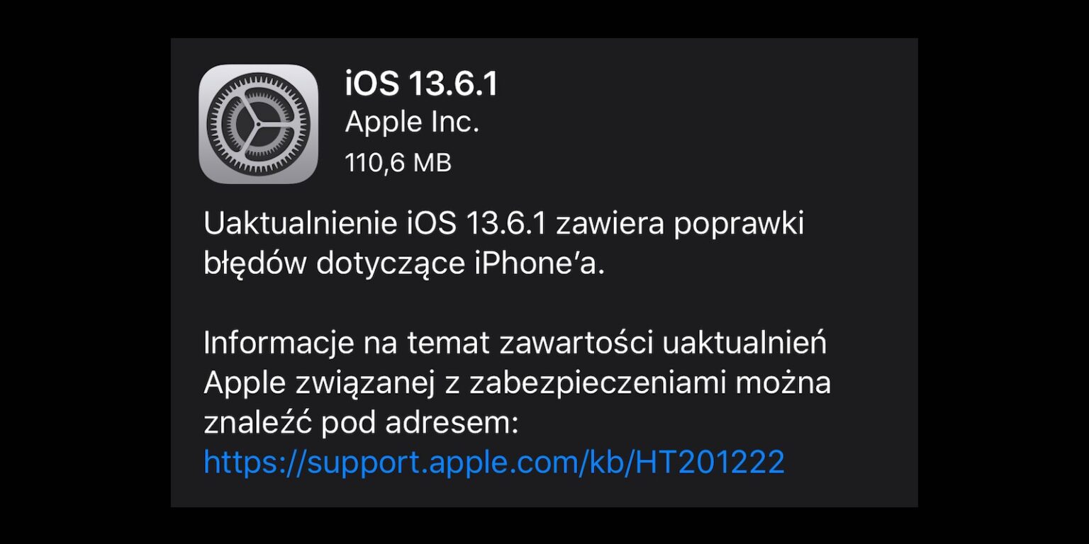 Uaktualnienie iOS 13.6.1 zawiera poprawki błędów dotyczące iPhone’a: