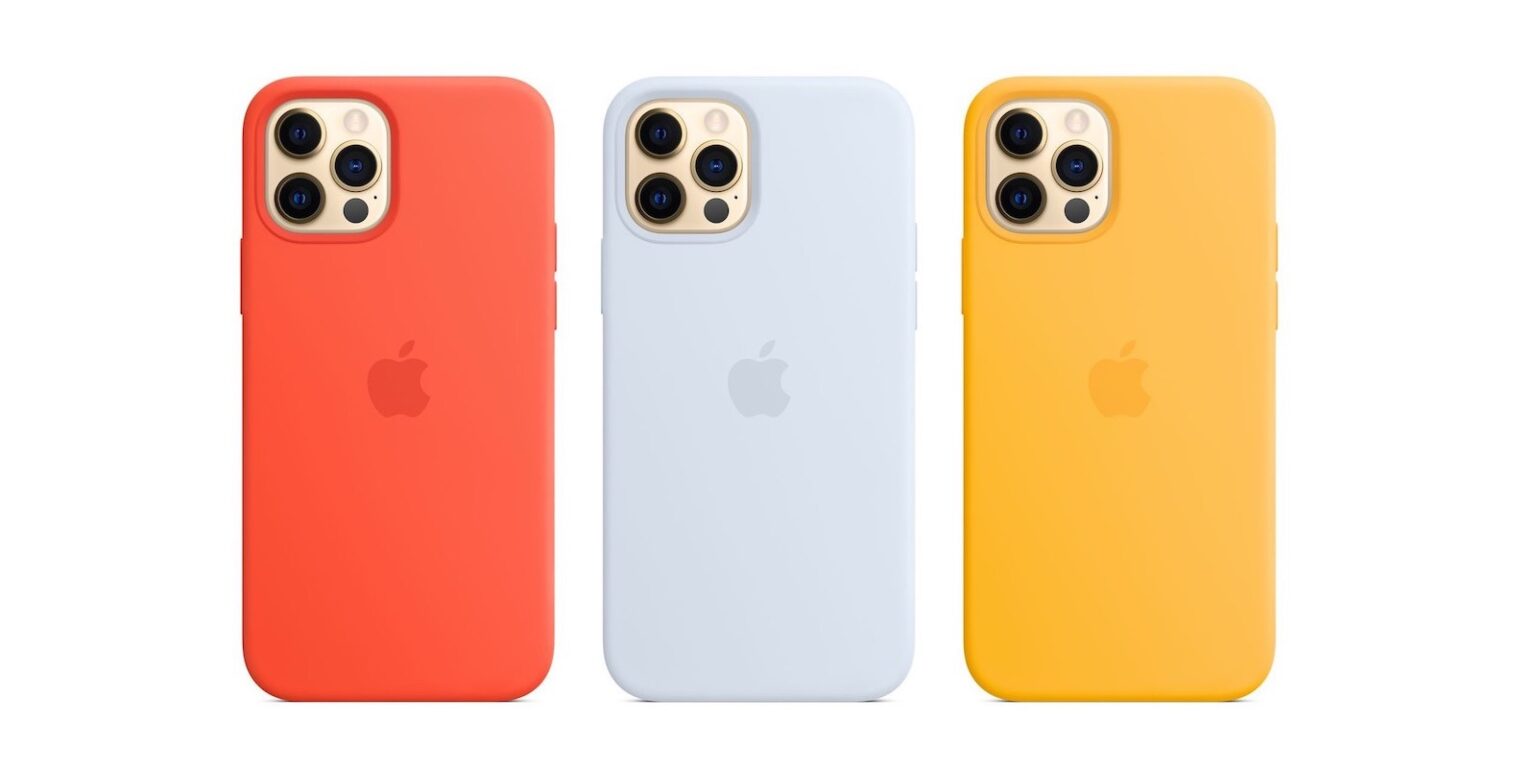 Apple wypuścił dziś silikonowe etui na iPhone’a 12, 12 Pro, 12 Pro Max i 12 mini w nowych kolorach: słonecznym, chmurnego błękitu i elektrycznej pomarańczy.