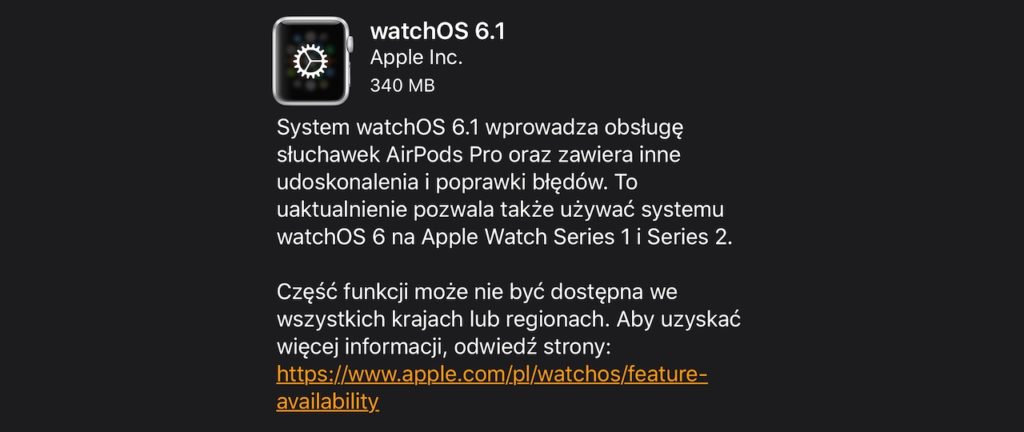 System watchOS 6.1 współpracuje od teraz z modelami „Apple Watch” Serii 1 i Serii 2 i jest pierwszą wersją systemu „WatchOS 6” działającą na tych urządzeniach.