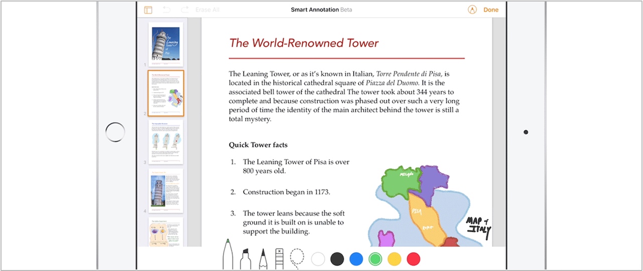 Zintegrowane wsparcie Apple Pencil w nowych, nadchodzących wersjach Pages i Keynote umożliwi użytkownikom dodawanie rysunków bezpośrednio do raportów i korzystanie z inteligentnych funkcji adnotacji, a uczniowie w szczególności odkryją możliwość korzystania z rysika w aplikacji Numbers, aby móc dodać notatki do swoich „raportów lekcyjnych”, powiedział Apple.
