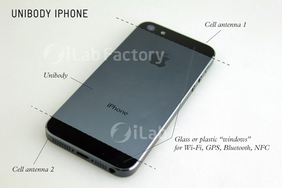 Patrząc na prawdopodobną konstrukcję anteny iPhone’a nowej generacji, Lehman zauważa jak antena ewoluowała między modelami iPhone’a 4 GSM i iPhone’a 4 CDMA, z którego projekt przeniesiono następnie do iPhone’a 4S. Po początkowych kontrowersjach z zasięgiem w iPhone’ie 4, Apple przeprojektował system antenowy umieszczając go po części w postaci elementów ze stali nierdzewnej w górnej i dolnej części urządzenia i pozostawiając fragmenty wzdłuż dwóch boków tworząc metalowe wykończenie.