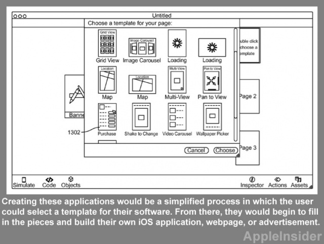 Patent zatytułowany „Konfiguracja zawartości urządzenia”, odkryty przez AppleInsider, opisuje narzędzie, które będzie działać w podobny sposób jak stare oprogramowanie firmy Apple iWeb, pozwalające na budowanie aplikacji iOS za pomocą prostego graficznego interfejsu użytkownika – w przeciwieństwie do trudnych kodów.Firma Apple zwraca uwagę, że język programowania jest niekiedy „przeszkodą do tworzenia treści”, więc ma to na celu zapewnienie nietechnicznym użytkownikom łatwego sposobu na budowanie aplikacji.