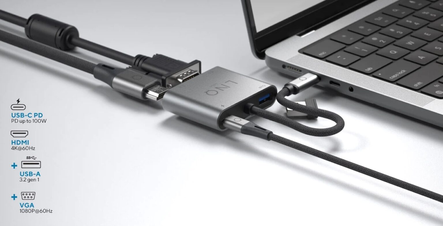 Multiport LINQ 4w1 4K HDMI Adapter, zgodnie z nazwą, cechuje się czterema wbudowanymi złączami. Port HDMI, obsługujący krystalicznie czysty obraz 4K (rozdzielczość 3840 x 2160) o częstotliwości odświeżania 60 Hz, jest idealny do pracy na większym ekranie telewizora czy projektora. Tak samo jak do oglądania filmów lub seriali w kinowej jakości. Dodatkowy port VGA umożliwia połączenie ze starszego typu wyświetlaczami, co czyni go przydatnym w różnych warunkach.