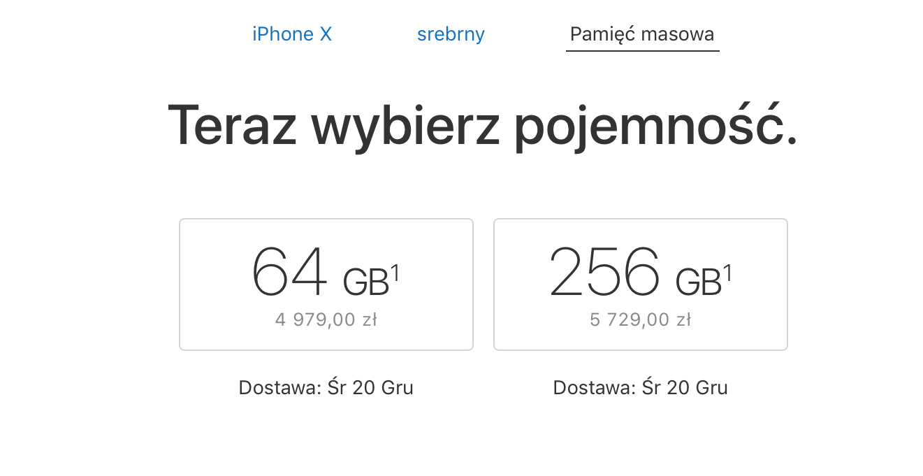 Tak szybki czas dostawy możliwy jest dla obu pojemności jak i kolorów. Oznacza to, że chętni na zrobienie sobie takiego świątecznego prezentu mają jeszcze taką okazję. Wygląda na to, że Apple osiągnął wreszcie równowagę popytu i podaży iPhone’a X, przynajmniej na razie.