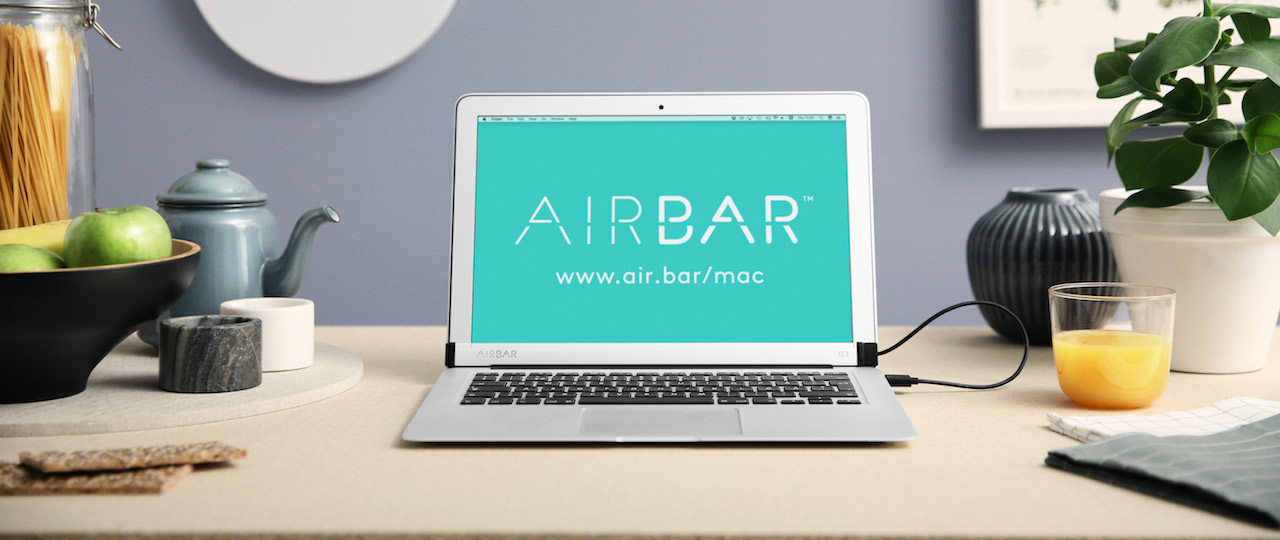 AirBar to urządzenie, które po podłączeniu do komputera wyświetla niewidoczne dla oka pole światła. Po zaburzeniu jego struktury przez palec, rysik itp. zostaje do komputera wysłany sygnał i dzięki niemu zostaje na przykład uruchomiona aplikacja, którą wybraliśmy. AirBar jest wykonany z aluminium, a przymocowuje się go za pomocą uchwytów magnetycznych, które wykorzystują ramkę naszego MacBooka.