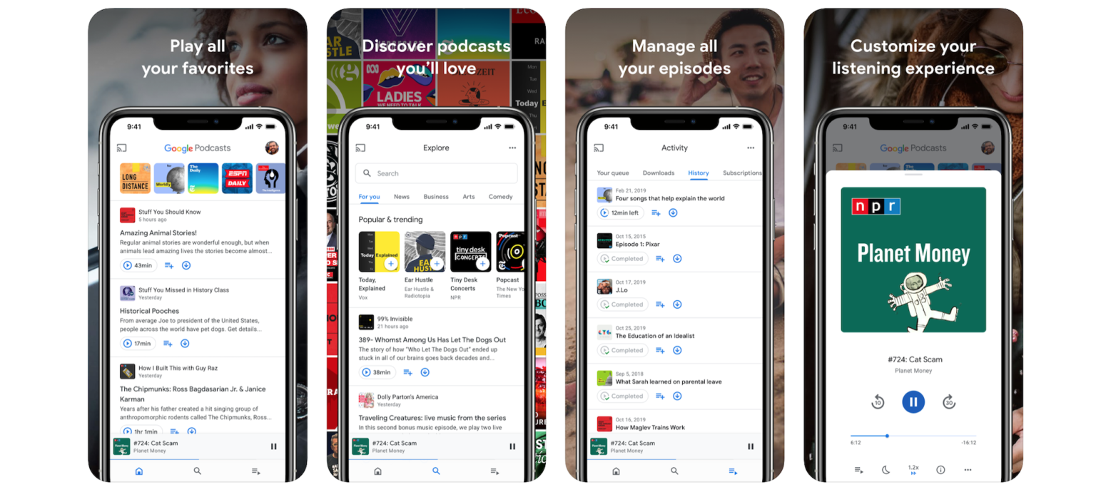 Google ogłosił aplikację Google Podcasts na iOS w marcu. W ramach tego wydania aplikacja, która wcześniej była dostępna tylko na Androida, została poddana przeglądowi, który ułatwia znajdowanie treści podcastów, tworzenie list ulubionych podcastów i dostosowywanie wrażeń odsłuchowych.