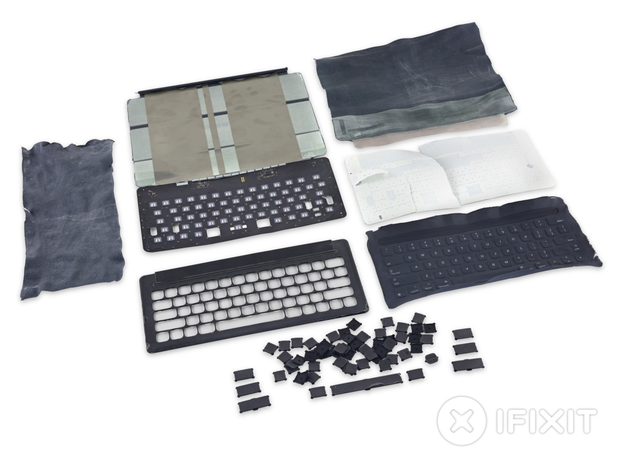 iFixit zakończył dziś demontaż pierwszej oficjalnej klawiatury Apple dla iPada Pro. Choć jej rozebranie nie daje nam zbyt dużo zaskakujących rewelacji dotyczących jej wnętrza, to daje zainteresowanym bliższe spojrzenie na wykorzystane w niej materiały o bardzo dobrej jakości, które powinny uczynić ją znacznie wytrzymalszą od normalnej klawiatury. To wielki plus, ponieważ drugim odkryciem jest fakt, że jest ona również niemożliwa do naprawienia.