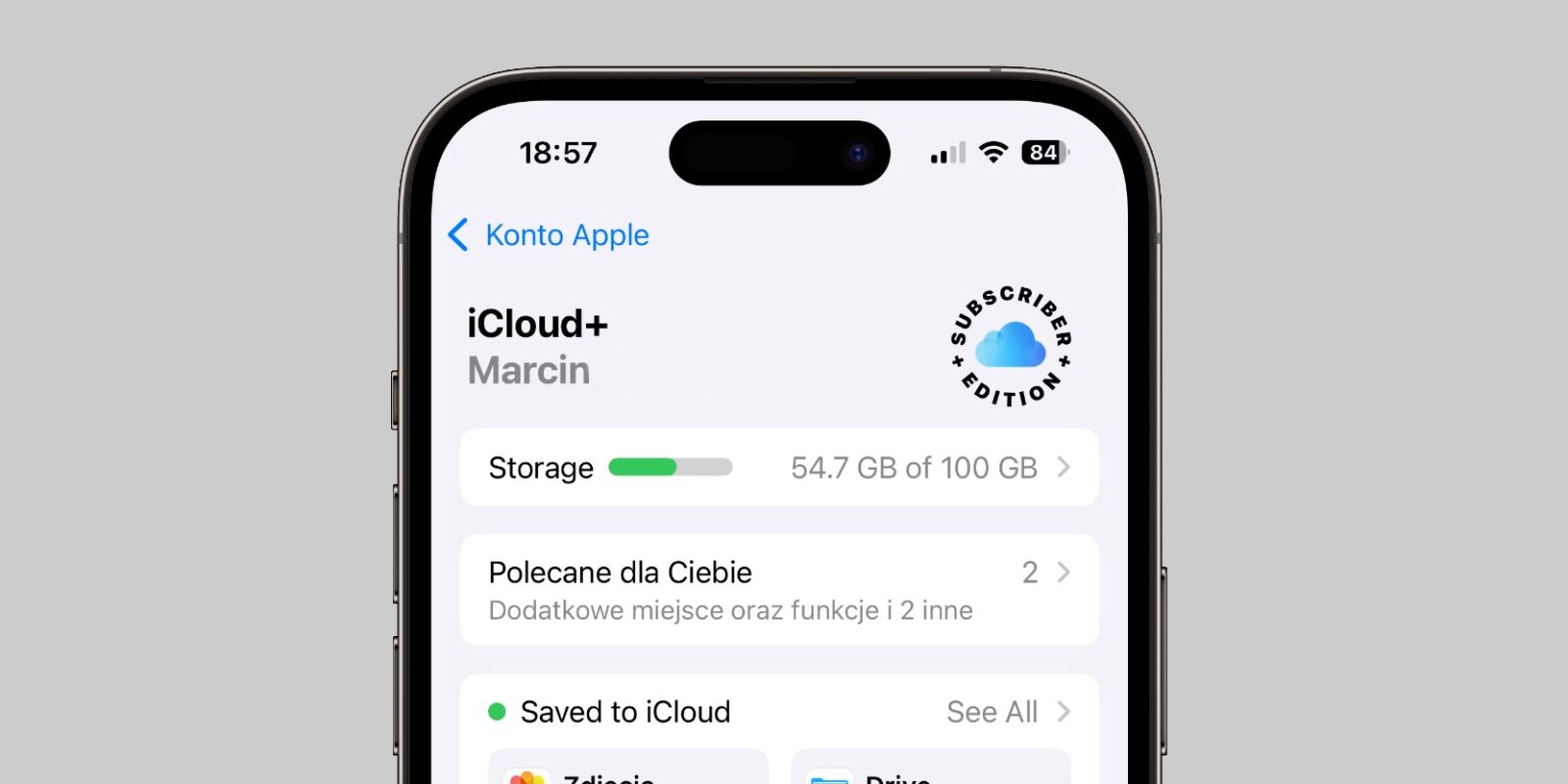 Został również dodany bardziej widoczny interfejs „Polecane dla Ciebie”, który sugeruje takie czynności jak usuwanie nieaktywnych kopii zapasowych, uaktualnienie do nowego planu iCloud+ i inne, a także zapewnia szybszy dostęp do kopii zapasowych iCloud.