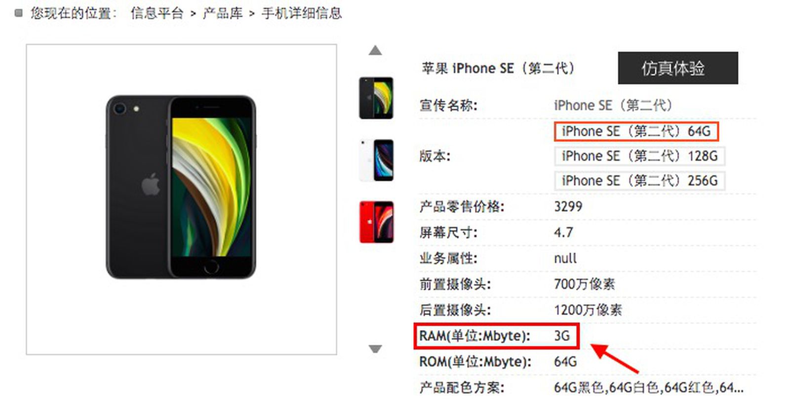China Telecom twierdzi, że nowy iPhone SE ma 3 GB pamięci RAM. Dla porównania, seria iPhone’ów 11 ma 4 GB pamięci RAM, co sugeruje, że Apple umieściło mniej pamięci w iPhonie SE, aby sprostać niższym wymaganiom aparatu z jednym obiektywem i innym możliwościom sprzętowym.