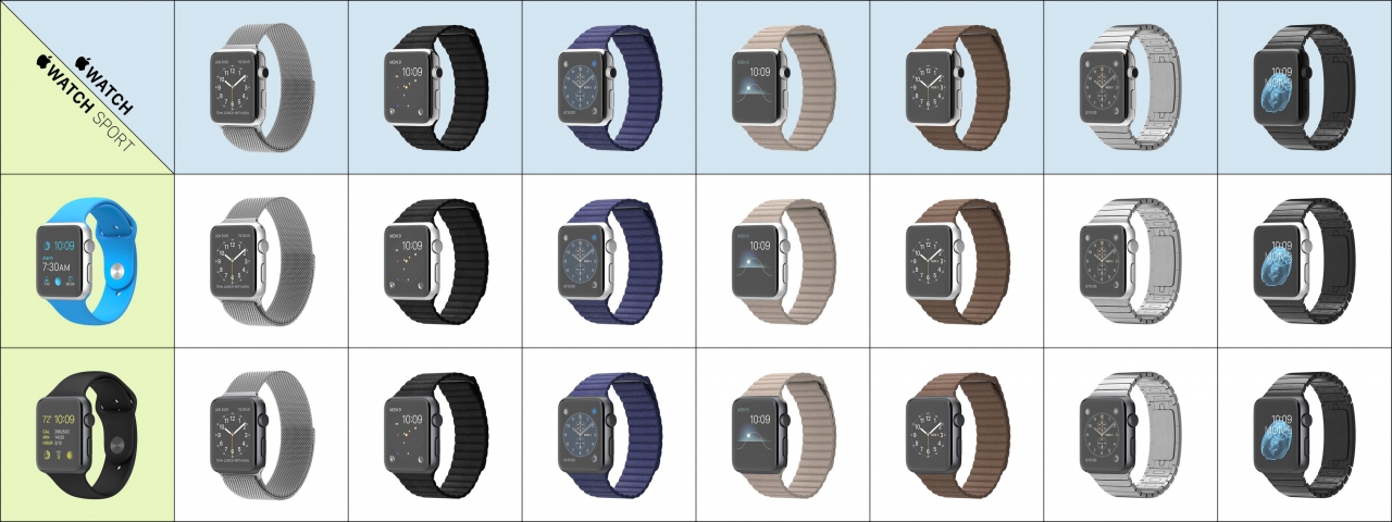 Ceny aluminiowego Apple Watch Sport w Europie zaczynają się od 399 EUR. Mając na uwadze, że modele ze stali nierdzewnej Apple Watch zaczynają się od 649 EUR, a większość pasków można kupić oddzielnie, można rozważyć złożenie całkiem ciekawe modelu łącząc obie te możliwości. Zestawienie poniżej pozwala zwizualizować, jak pasek z kolekcji stalowej może wyglądać, gdy w połączeniu z aluminiową tarczą zegarka.