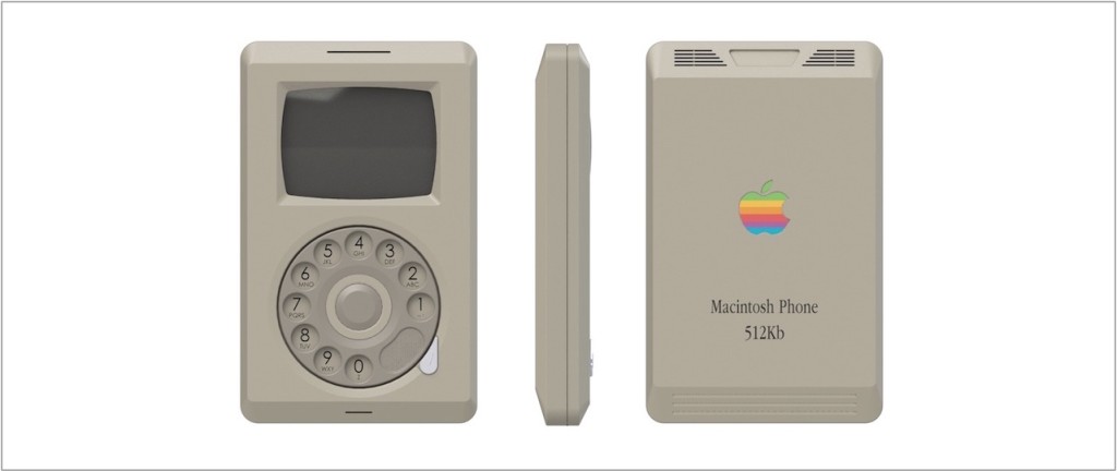 Pierre Cerveau wyobraził sobie flagowy produkt firmy Apple nazywając go “Macintosh Phone” i czerpiąc inspirację z jednego z innych produktów firmy Apple z tamtych czasów – komputera Macintosh 512K.