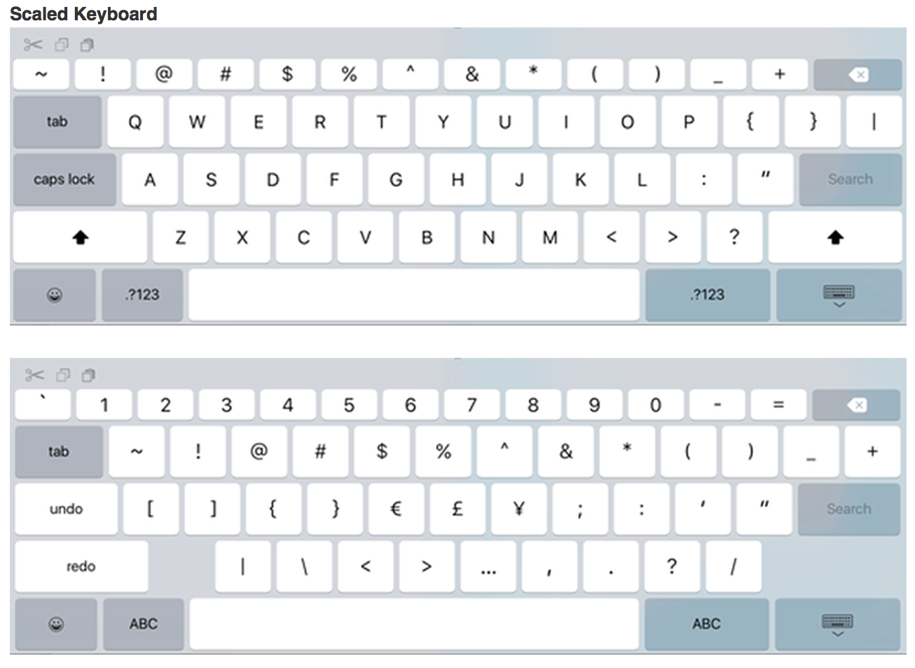 Deweloper iOS, Steven Troughton-Smith odkrył, że nowa klawiatura iPada w iOS 9 beta umożliwia skalowanie do większego rozmiaru z przegrupowanymi klawiszami dostarczając dalszych dowodów, że Apple może planować wypuścić w niedalekiej przyszłości prawdopodobnego 12,9-calowego „iPada Pro”.