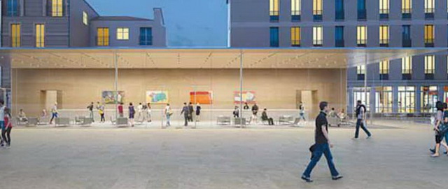 Według magazynu, miasto wymogło od Apple utworzenia budowli odpornej na trzęsienie ziemi, a zarazem harmonizującej z otoczeniem malowniczych ulic. Miasto jest w południowej Francji, co sprzyja dobrej pogodzie i tysiącu turystów każdego roku. Obszar na zachód od przyszłego sklepu został niedawno zrekonstruowany z wieloma ekskluzywnymi sklepami międzynarodowych marek.