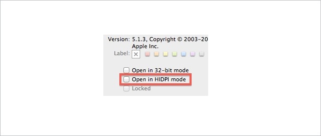 Dowody nad trwającymi pracami Apple nad HiDPI ukazały się w najnowszej odsłonie OS X 10.7.3 dla deweloperów, gdzie w oknie „Get Info” widzimy dodanie pola wyboru „Otwórz w trybie HIDPI”. Zaznaczenie pustego pola oznaczać będzie uruchomienie aplikacji wykorzystującej nowe możliwości wyświetlania dwukrotnie wyższej rozdzielczości na ekranie komputera.