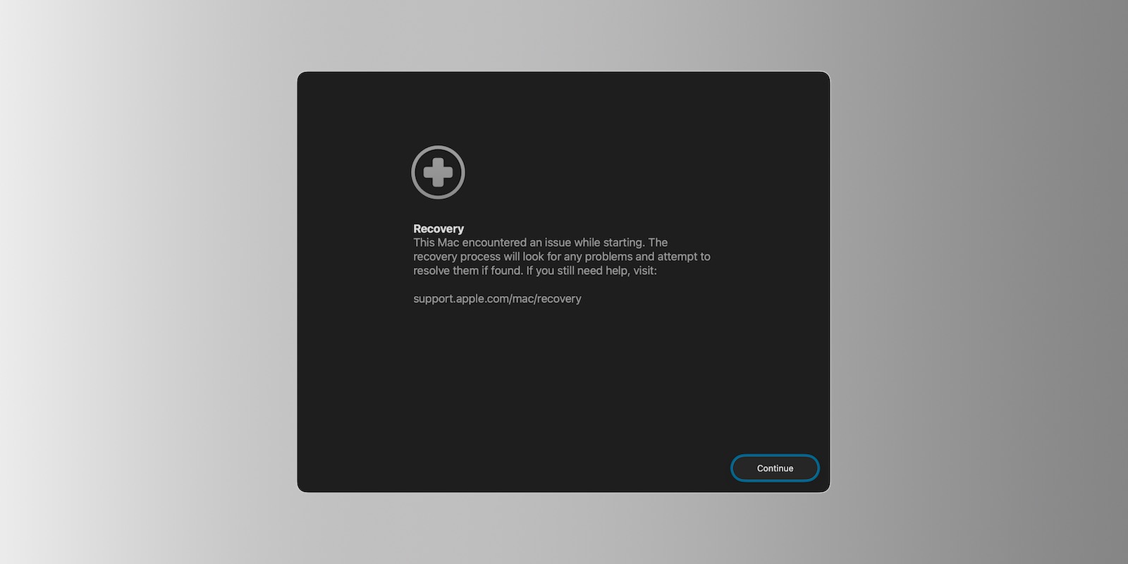 Jeśli na komputerze Mac występują pewne problemy podczas uruchamiania, Apple informuje, że komputer może automatycznie uruchomić się ponownie i otworzyć Asystenta Odzyskiwania. Aby skorzystać z narzędzia, kliknij wystarczy kliknąć przycisk „Kontynuuj” w oknie i postępować zgodnie z instrukcjami wyświetlanymi na ekranie.