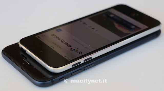 Włoska strona Macitynet, która wcześniej opublikowała kilka zdjęć w dość dobrej jakości przedstawiające fizyczną makietę prawdopodobnego 4,7-calowego iPhone’a 6 na podstawie rysunków projektowych z japońskiego magazynu MacFan, teraz podzieliła się kolejnym ciekawym zestawem zdjęć porównujących makietę do obecnej generacji iPoda touch.