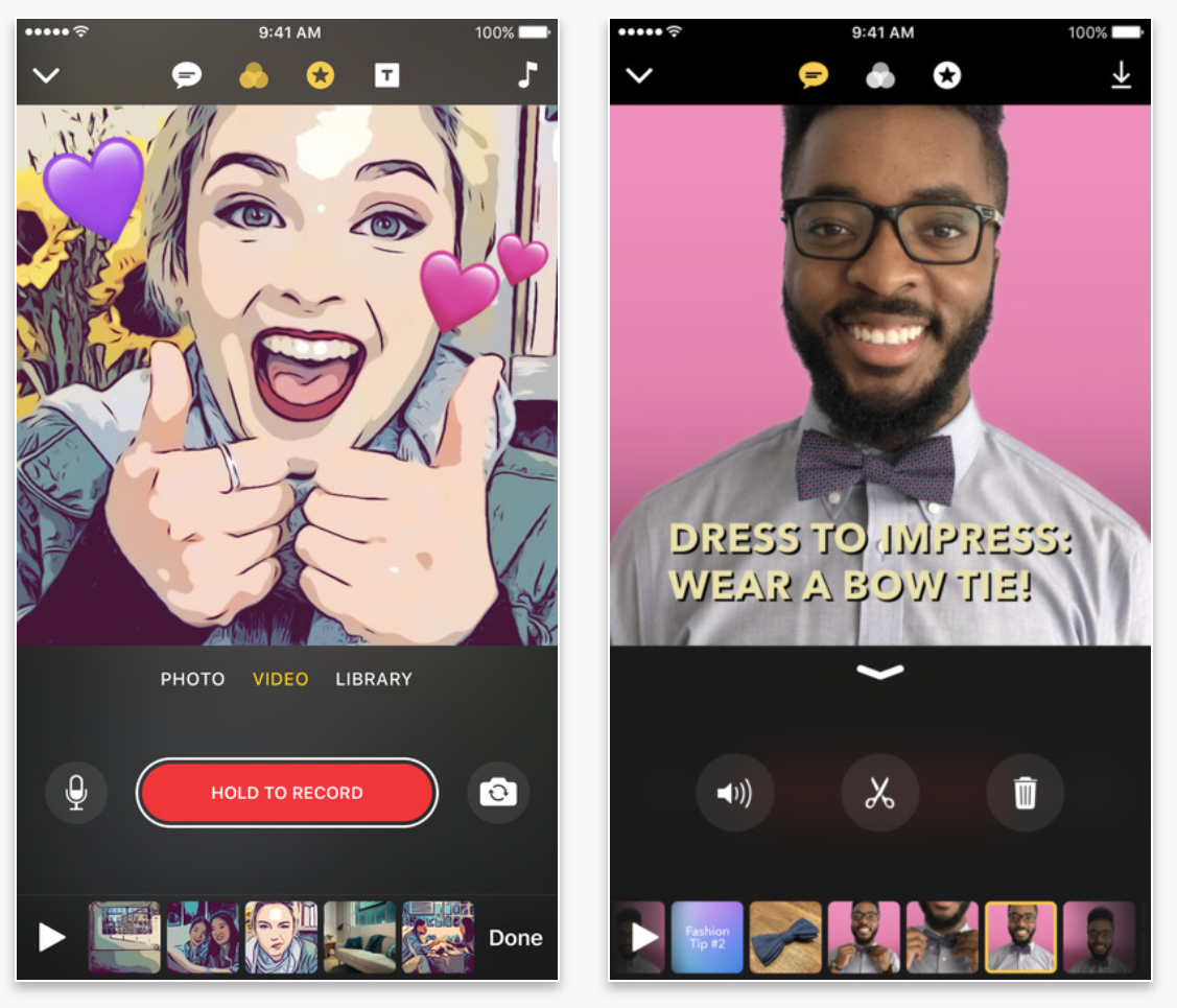 Przedstawiamy Clips. Nową apkę na iOS do kręcenia i udostępniania filmów wzbogaconych o zabawne napisy, efekty, grafiki i nie tylko. Treści dodaje się łatwo i szybko. Wystarczy nagrać materiał albo przeciągnąć wideo lub zdjęcie z biblioteki. Funkcja Live Titles pozwala łatwo tworzyć animowane napisy. Ich treść dyktujesz w trakcie kręcenia. Masz do wyboru wiele różnych stylów, a każdy będzie idealnie zsynchronizowany z Twoim głosem. Wybierz filtr. Dorzuć emoji. I jeszcze komiksowe dymki albo strzałki. Lub stwórz idealny nastrój muzyką, która automatycznie dopasowuje się do długości filmu.