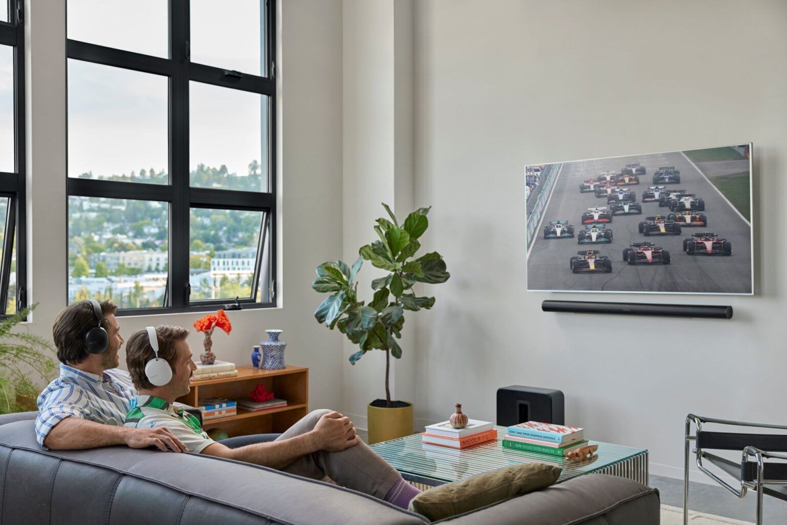 - Domowe kino dla dwóch osób: Funkcja TV Audio Swap została zaktualizowana, dzięki czemu teraz dwie osoby mogą jednocześnie słuchać dźwięku z telewizora na własnych słuchawkach Sonos Ace, o ile są połączone z soundbarem Sonos.