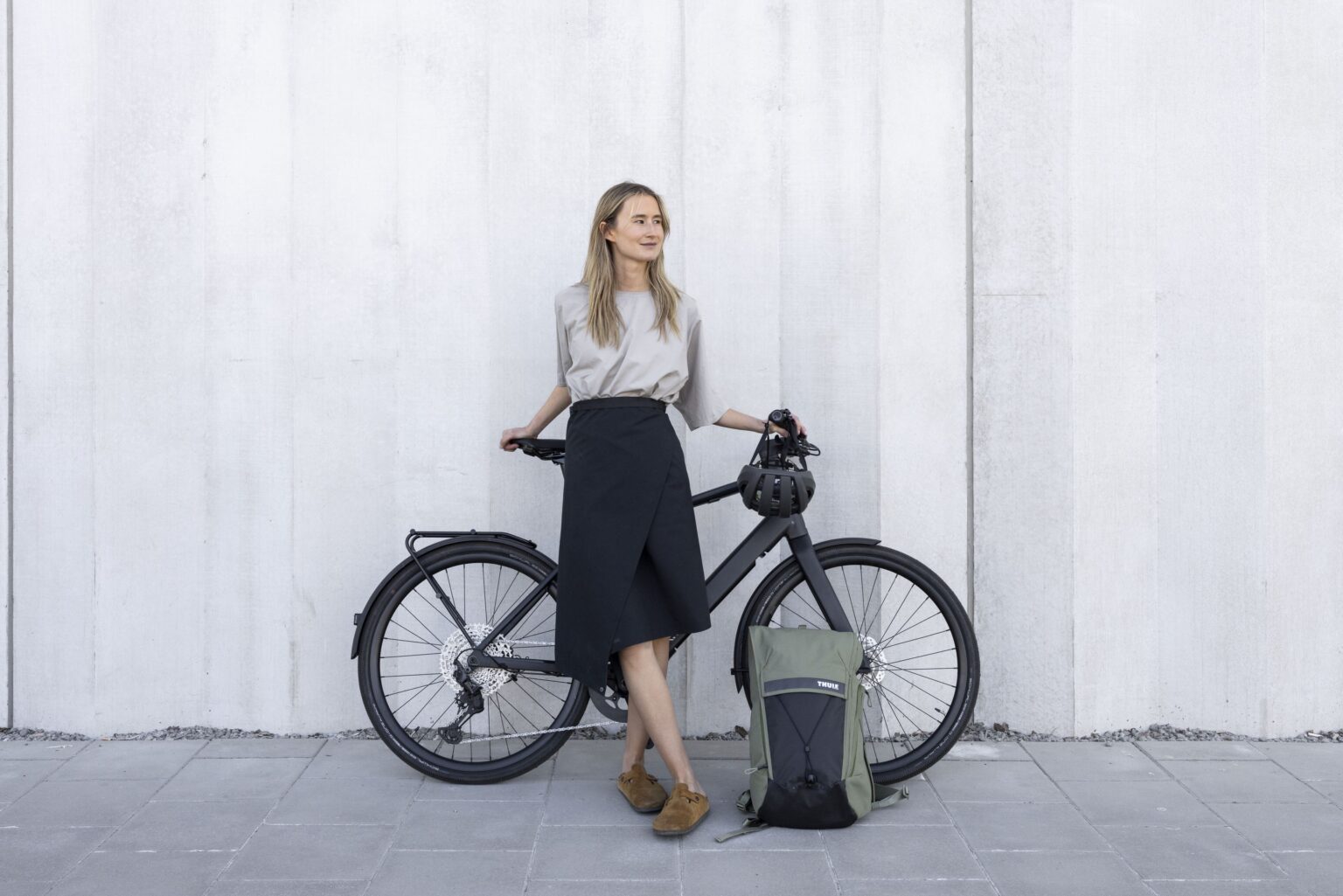 Na czas jazdy rowerem telefon można wygodnie umieścić w specjalnej bocznej kieszeni, a drobne przedmioty w zewnętrznych kieszeniach z przegródkami po obu stronach. Plecak ma też szlufkę na lampę rowerową i odblaskowe elementy (zapewniające świetną widoczność po zmroku) oraz 4-punktową linkę, za pomocą której po dojechaniu do celu podróży można łatwo zamocować na nim kask (boczna kieszeń świetnie nada się do schowania blokady rowerowej).