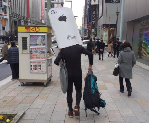 Yoppy, autor bloga o Apple z Tokio zawsze chciał być pierwszym w kolejce do nowego iPhone’a. W zeszłym roku stracił mnóstwo czasu na dzień przed premierą, ale okazało się, że w ostatniej chwili jednak uprzedzili go inni. W tym roku, nie zamierza popełnić tego samego błędu. Ustawił się więc w kolejce na 7 miesięcy przed spodziewanym terminem premiery nowego iPhone’a 6. Co więcej, sam ubrany jak iPhone.
